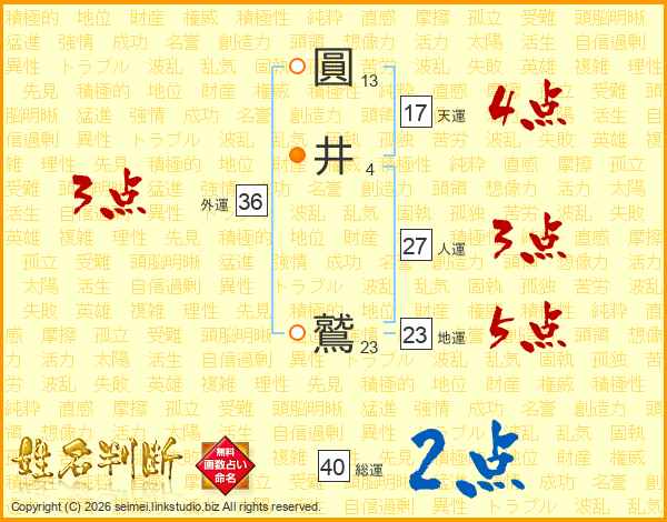 圓井鷲さんの総運は40画の2点!
