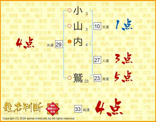 小山内鷲さんの総運は33画の4点!