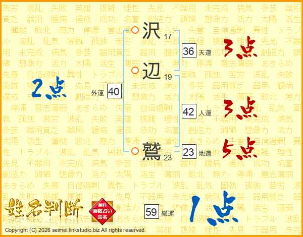 沢辺鷲さんの総運は59画の1点!