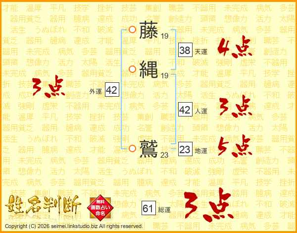 藤縄鷲さんの天運は38画の4点!