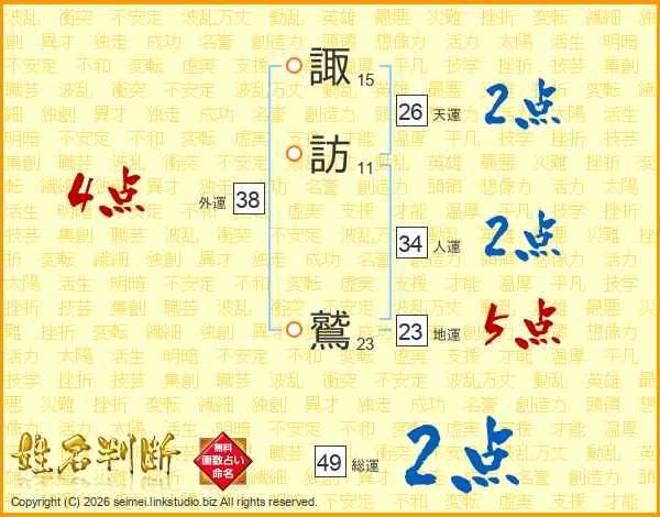 諏訪鷲さんの天運は26画の2点!