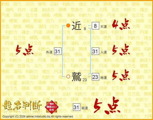 近鷲さんの総運は31画の5点!