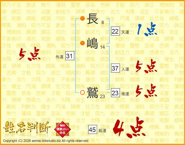 長嶋鷲さんの総運は45画の4点!