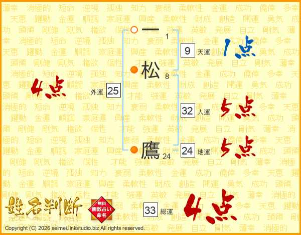一松鷹さんの人運は32画の5点!