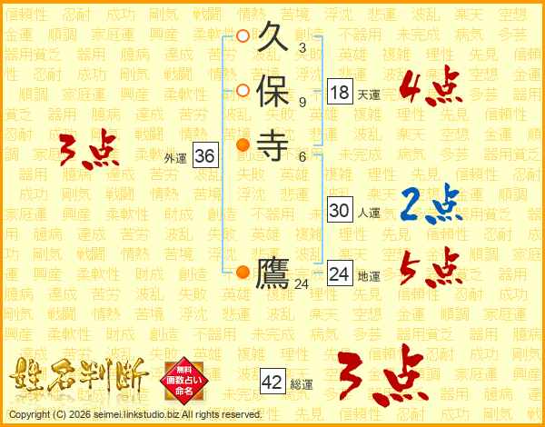 久保寺鷹さんの総運は42画の3点!