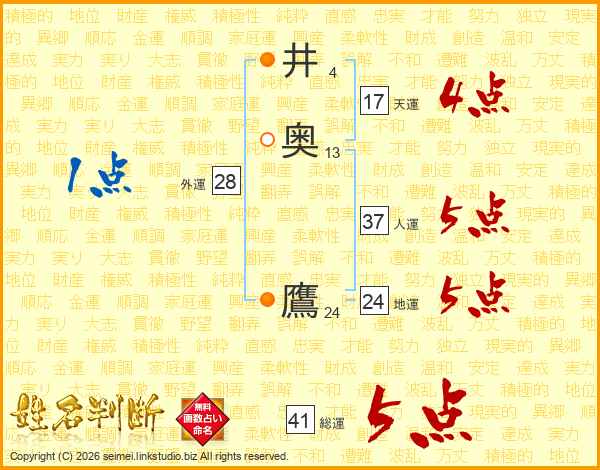 井奥鷹さんの総運は41画の5点!