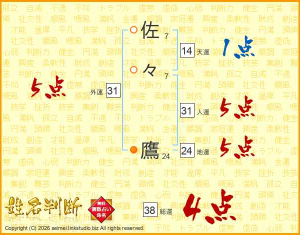 佐々鷹さんの総運は38画の4点!