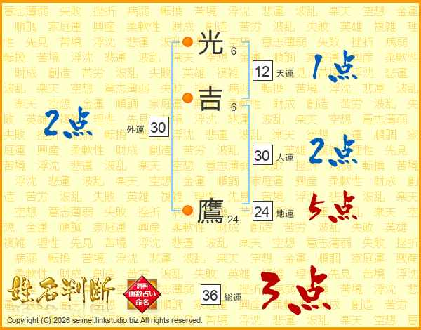 光吉鷹さんの総運は36画の3点!