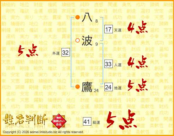 八波鷹さんの総運は41画の5点!