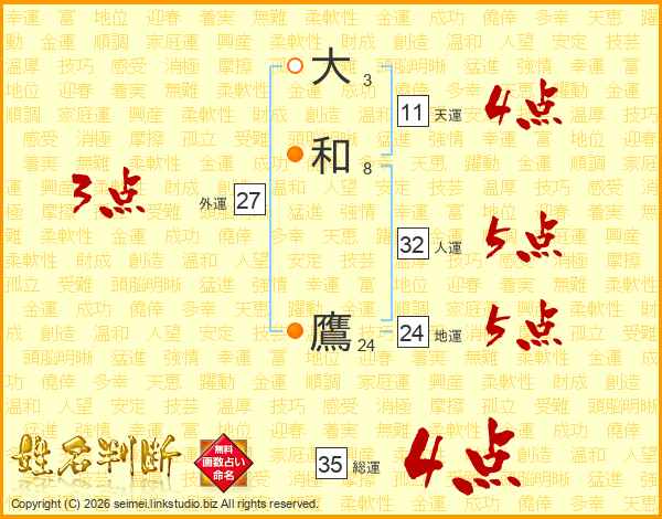 大和鷹さんの天運は11画の4点!