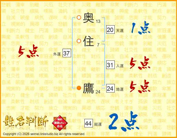 奥住鷹さんの総運は44画の2点!