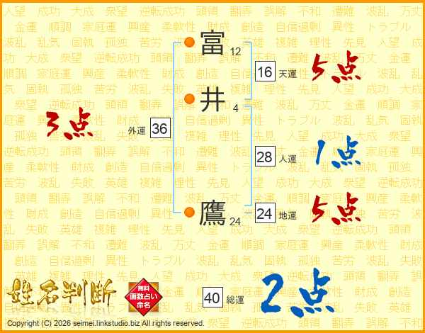 富(12画)井(4画) 鷹(24画)