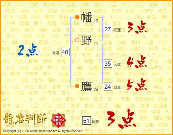 幡野鷹さんの総運は51画の3点!