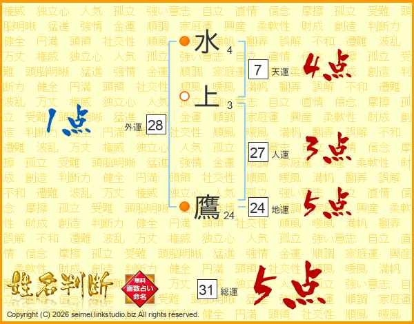 水上鷹さんの総運は31画の5点!