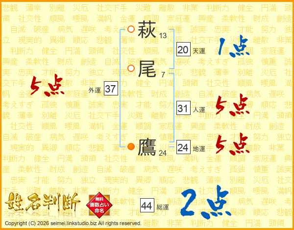 萩尾鷹さんの総運は44画の2点!
