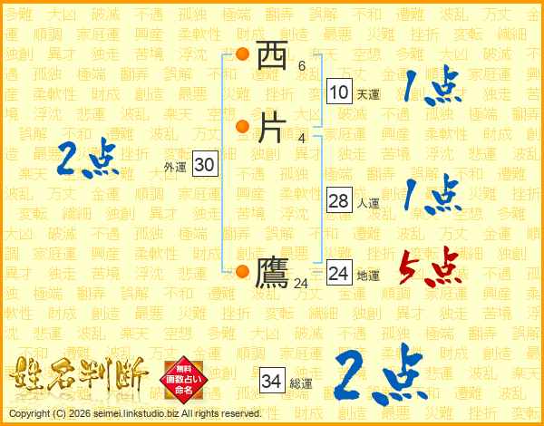 西片鷹さんの地運は24画の5点!