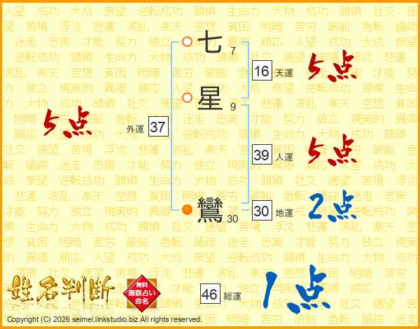 七星鸞さんの総運は46画の1点!