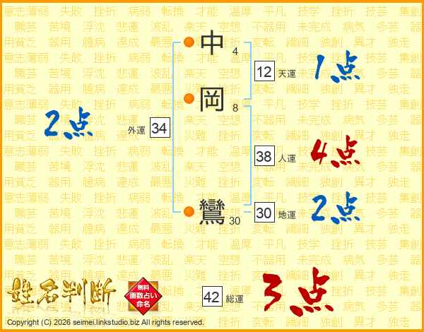 中岡鸞さんの総運は42画の3点!