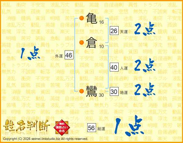 亀倉鸞さんの総運は56画の1点!