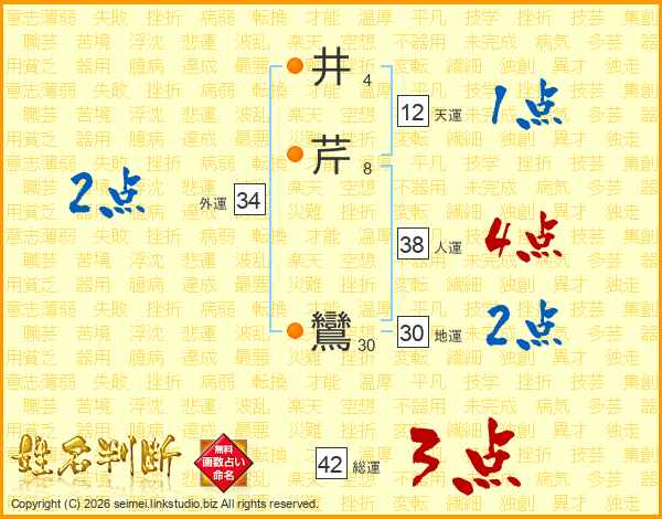 井芹鸞さんの総運は42画の3点!