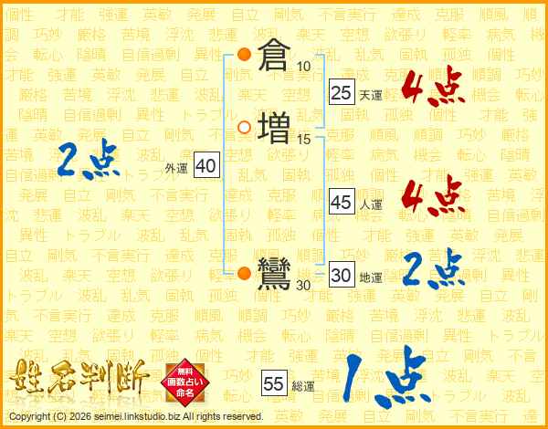 倉増鸞さんの総運は55画の1点