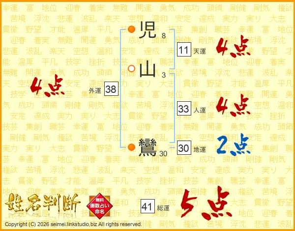 児山鸞さんの外運は38画の4点!