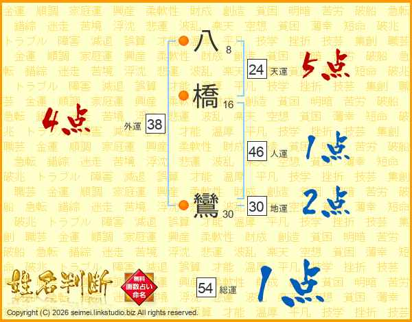 八橋鸞さんの総運は54画の1点