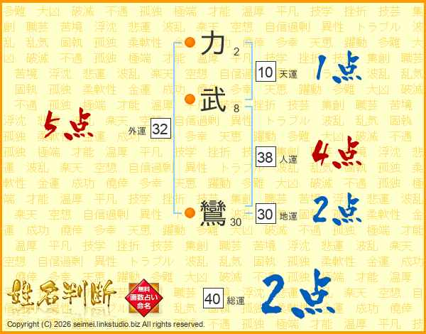 力武鸞さんの総運は40画の2点!