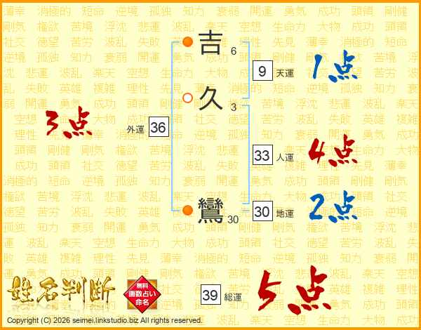 吉久鸞さんの総運は39画の5点!