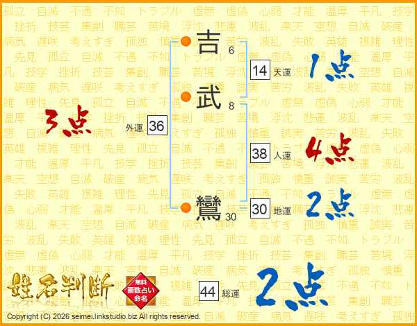 吉武鸞さんの総運は44画の2点!
