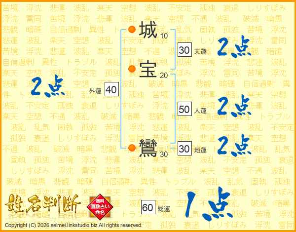 城宝鸞さんの外運は40画の2点!