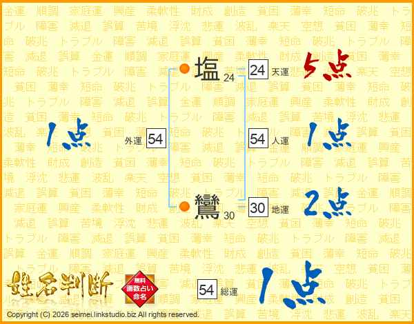 塩鸞さんの総運は54画の1点