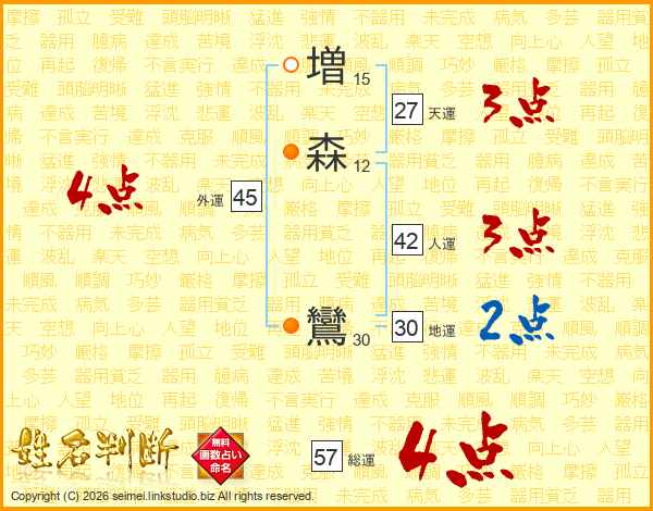 増森鸞さんの総運は57画の4点