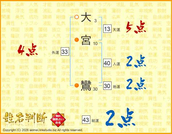 大宮鸞さんの総運は43画の2点!