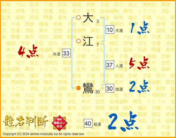 大江鸞さんの総運は40画の2点!