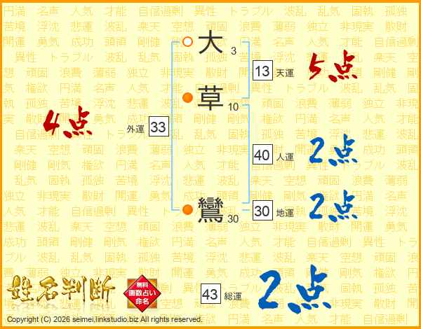 大草鸞さんの総運は43画の2点!