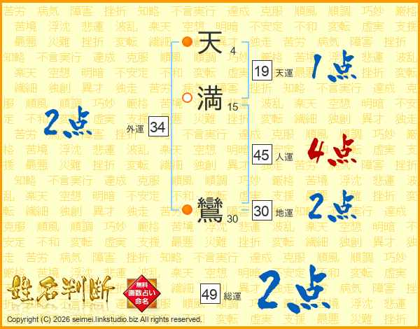 天満鸞さんの総運は49画の2点