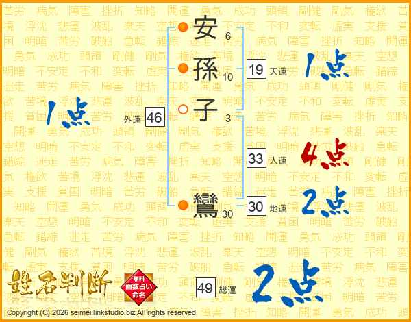 安孫子鸞さんの総運は49画の2点!