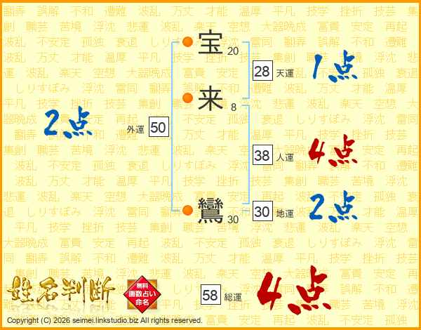 宝来鸞さんの総運は58画の4点