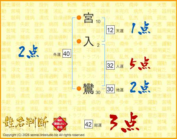 宮入鸞さんの総運は42画の3点!