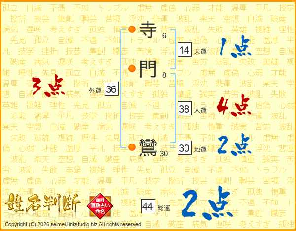寺門鸞さんの総運は44画の2点!
