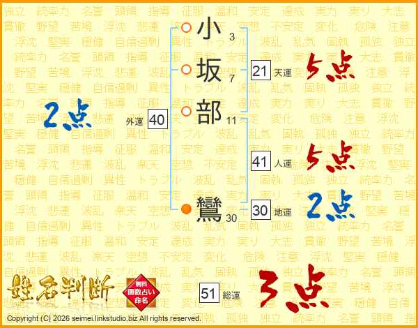 小坂部鸞さんの総運は51画の3点!