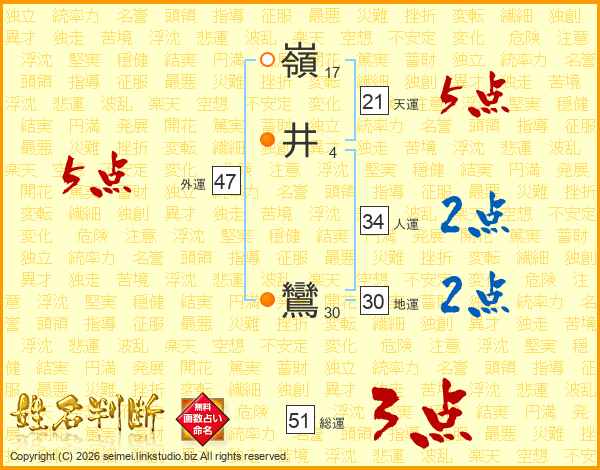 嶺井鸞さんの外運は47画の5点!