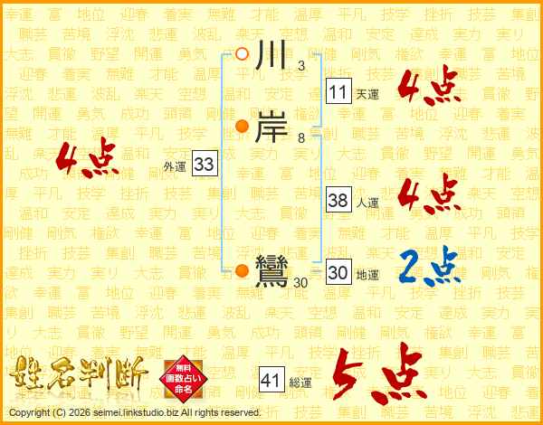 川岸鸞さんの総運は41画の5点!