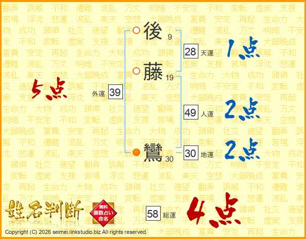 後藤鸞さんの総運は58画の4点!