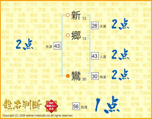 新郷鸞さんの天運は26画の2点