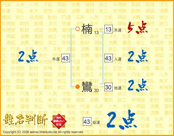 楠鸞さんの人運は43画の2点!