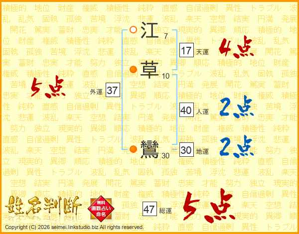 江草鸞さんの総運は47画の5点!