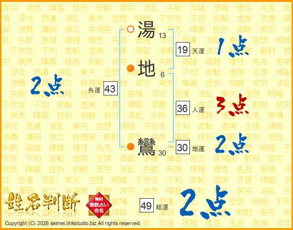 湯地鸞さんの総運は49画の2点!