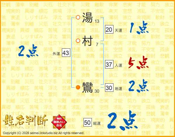 湯村鸞さんの人運は37画の5点!
